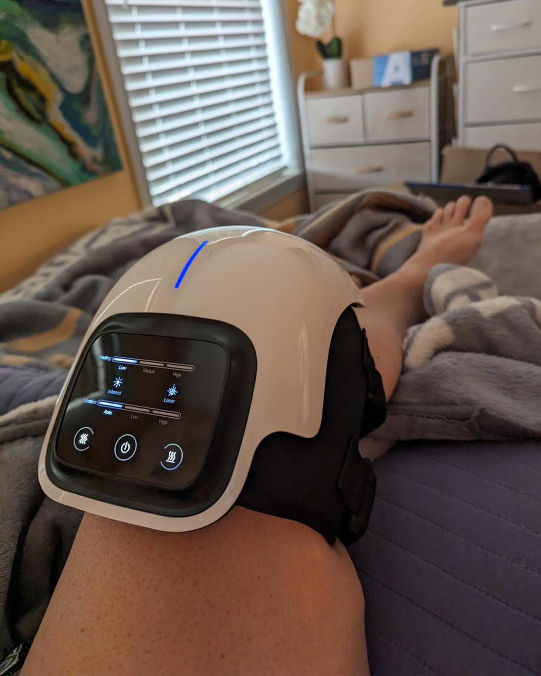 This is honestly the best thing I've found for my knees. My mom and I both have bad arthritis, and the pain got so bad neither of us could sleep through the night. We'd wake up multiple times because our knees were killing us. Tried pills, braces, you name it. I bought one to try it out first. Used it that night before bed and actually woke up better. After about three weeks, my pain went from constant and sharp to just... manageable. I started skipping days and was still feeling okay. Worked so well I got one for my mom too. She was skeptical as hell, but after a week she told me her knees felt better than they had in months. She's slowly back to doing her garden and going up stairs. If you're dealing with this kind of pain, it's worth trying. Helped both of us.