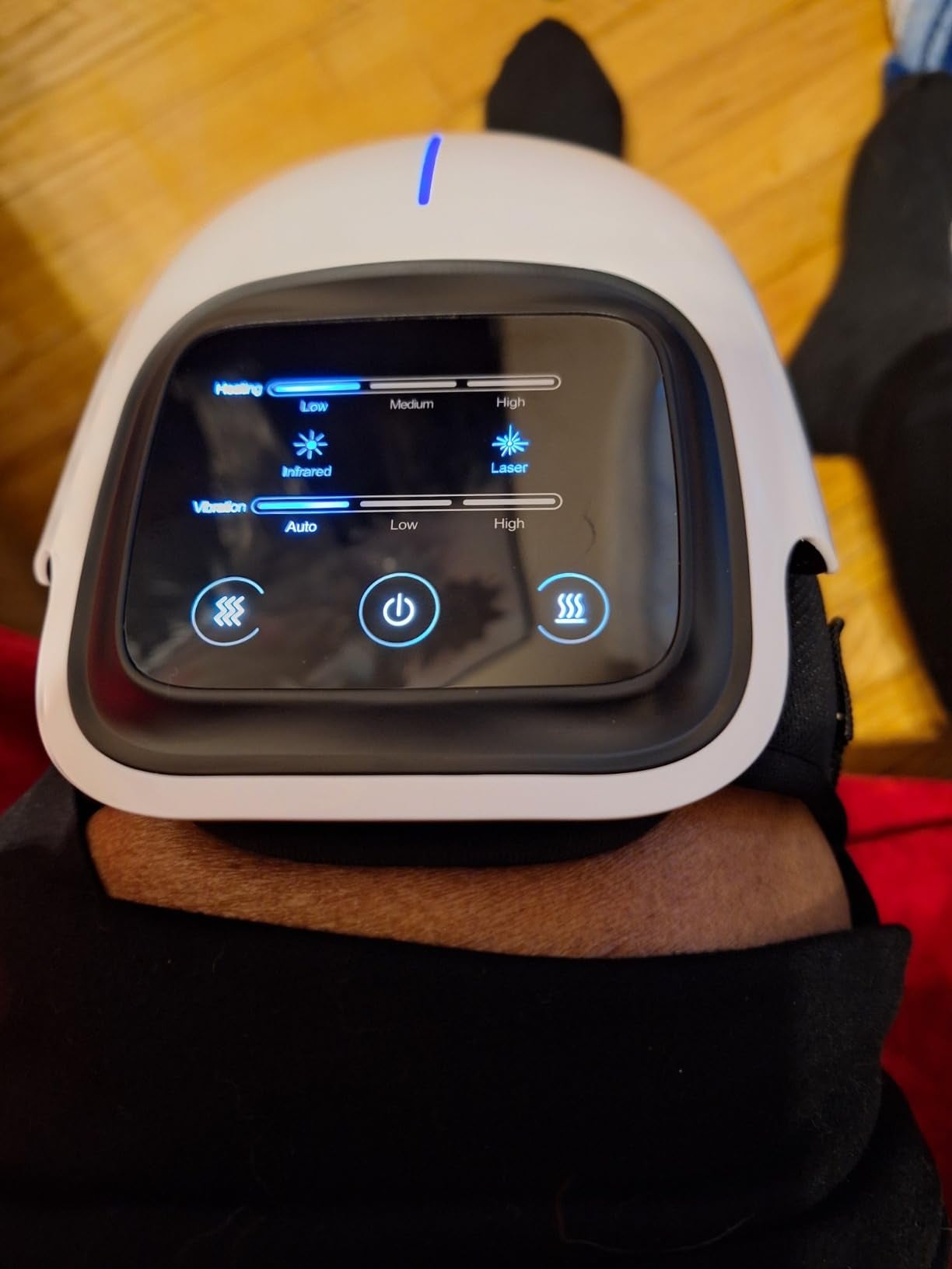 Hey...This device is a lifesaver! My knees constantly ached. This little device changed that. I've had arthritis and chronic knee pain for years. The heat, vibration, and red light really ease my pain after being on my feet all day. Hope it works for you too.